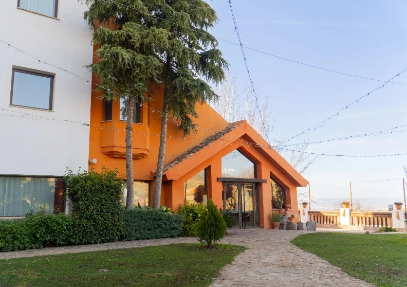 La opción perfecta para celebraciones más íntimas, bodas boutique o cenas de empresa. Disfruta de nuestra gastronomía de proximidad con vistas panorámicas desde la parte más alta de nuestras instalaciones, gracias a nuestra terraza con vistas a la sierra.